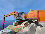 Большой экскаватор Hitachi, оборудованный для проектов защиты побережья 01.03.2025
